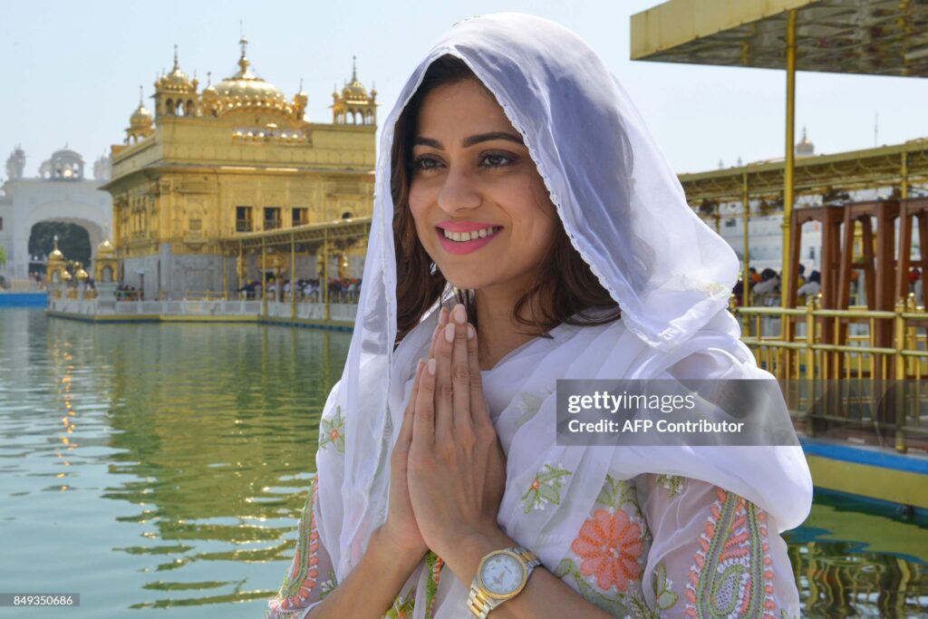 Indian actress Shamita Shetty pays her respects at the Golden Temple in Amritsar on September 19, 2017. / AFP PHOTO / NARINDER NANU (Photo credit should read NARINDER NANU/AFP via Getty Images)